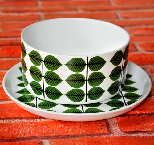 鮮やかなグリーンとしっかりした葉脈がインパクトをもつ、ベルサシリーズ。 今やリンドベリの食器の代名詞のようになっているデザインです。 '60に発