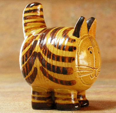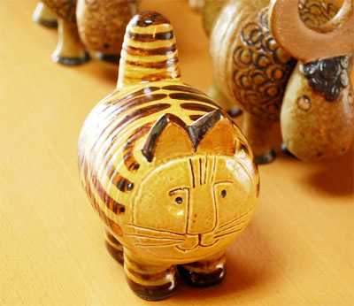 更に希少性の高い、JuraStoraKatten(ユーラストーラキャット)をついに入手。 こちらとなると、もう熱狂的な方にはふたつ返事でゲットといったところでしょうか。 へんてこな形といい、人面をぺたっとしたような顔といい...でも釉薬ばかりはまじめに美しく。 釉薬の出方により、赤みの強いものもありますが、こちらは、実際にいそうなネコの色です。 見れば見るほど引き込まれる愛らしさがあります。 こちらも古さ・使用感一切感じさせない、パーフェクトアイテム。 まさに招福です。