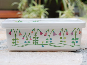 リネア柄のバターディッシュ、入荷しました。 ふたものは、毎度記述でお知らせしていますが、本体・ふた共無事でいることがとても「まれ」です。 お店にとったら、ひとつの品なのに双方コンディションが揃っていなくてはならない、少しやっかいなものでもあります。 ただ、双方ちゃんと優れたコンディションであれば、本当にラッキーですし、誇りをもってお勧めできるので、とてもうれしい存在でもあります。 そんな、「うれしい存在」。 しかも、スウェーデンのモダニストの巨匠リンドベリが、リネアの存在とイメージを具現化した、美しいパターン。 お客様のテーブルを素敵に飾る様子を思い浮かべては、うれしさ好循環なのです。