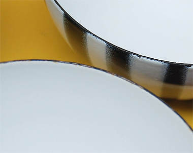 Cond. 大きなダメージのない、エクセレントの状態。 トレイは、新品同様です。 伐採が限られている今日には、とても貴重な、質のよいチークです。 ボウルは、一見新品のように見えますが、ふちにそれぞれほんのわずかな古さを感じさせます。 ふちには内側・外側あわせ7〜10箇所、1mm程度のものを含めたわずかなかけが、それぞれあります。 ふたつのボウルは、内側のかけがうす褐色のさび色になっています。(写真ご参照)。 外側のかけは、黒部分がそもそも多いので、欠点というような目立ち方ではまったくありません。 こちらも写真でご参照いただけます。 また、どのボウルの内側・外側ともエナメルへの傷は全くないに等しく、照りも大変きれいです。 底には、うっすら引きずった後のような軽いスクラッチが、数本ずつそれぞれ見られます。
