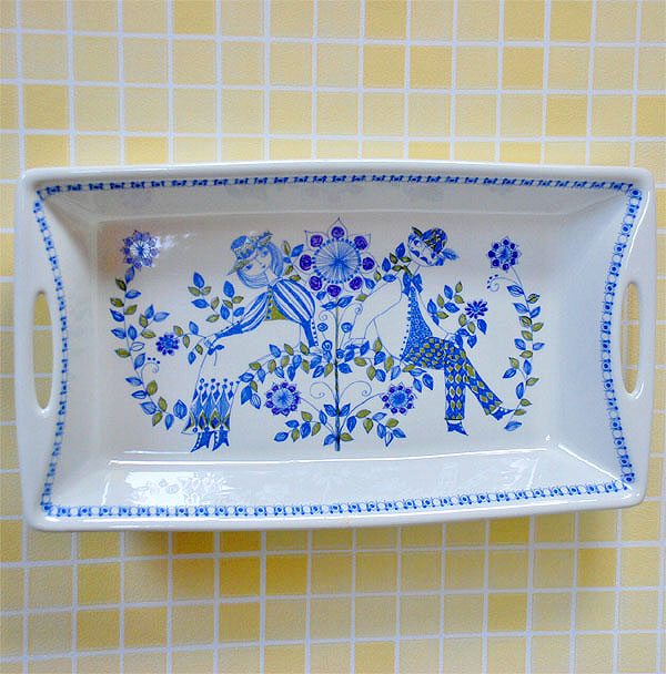 こちらも、フォーク調の装いのロッテちゃんと恋人が、いい感じで座っている絵の、ハンドル付きトレイプレートです。 厚みがありしっかりしていて、しかも