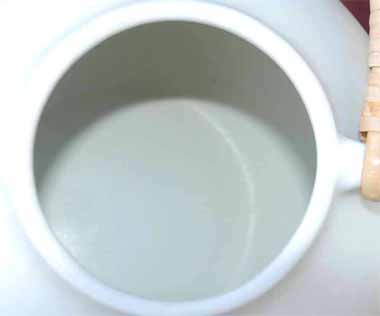 Cond. 右の写真、左下のように、下から上へひびのような(貫入のような)傷が伸び、後ろの取っ手あたりまで続いています。 また、写真のペン先からも、写らない程度ですが同様に2本下へ向かって伸びて、取っ手のあたりまでと、下まで達しているものがあります。 また、内側の注ぎ口近くに、写真のように、ひびが見られます。 どれも反面側には達しておらず、浅い傷と思われます。 実は、貫入とも見分けがつきません。 また、底の部分には、貫入が3本ほど見られます。
